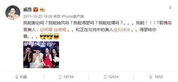 2011年的一篇微博,更直言要加入戚薇的後宮團,這算是赤裸裸的表白嗎?