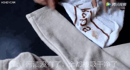之後將毛巾拿開,看,去汙漬是不是超簡單!