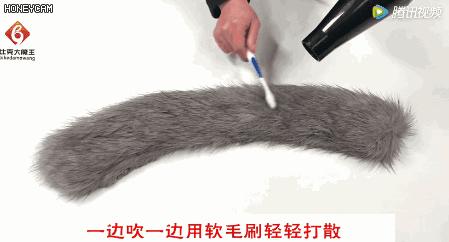 之後將吹風筒的溫度調為冷風,用一支軟毛的牙刷,一邊吹一邊用牙刷順著毛領的紋路輕輕刷散。大衣的毛領就這樣輕鬆清理乾淨啦!