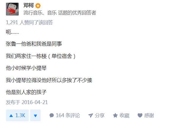 網路上有個「如何評價張魯一」的專欄,有位據說是他家鄰居的網友是這麼回覆的: