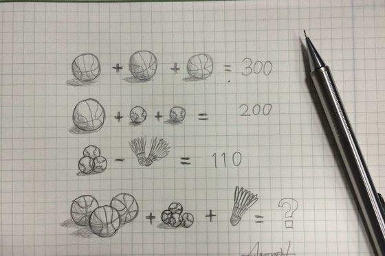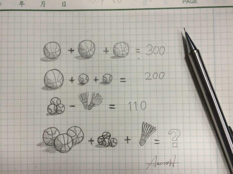 由於最近常常在網絡上看到水果算數跟花朵算數的相關圖片,自己覺得有趣,所以也畫了一道題目~~還順便想說丟個球給某女看看,看有沒有效果