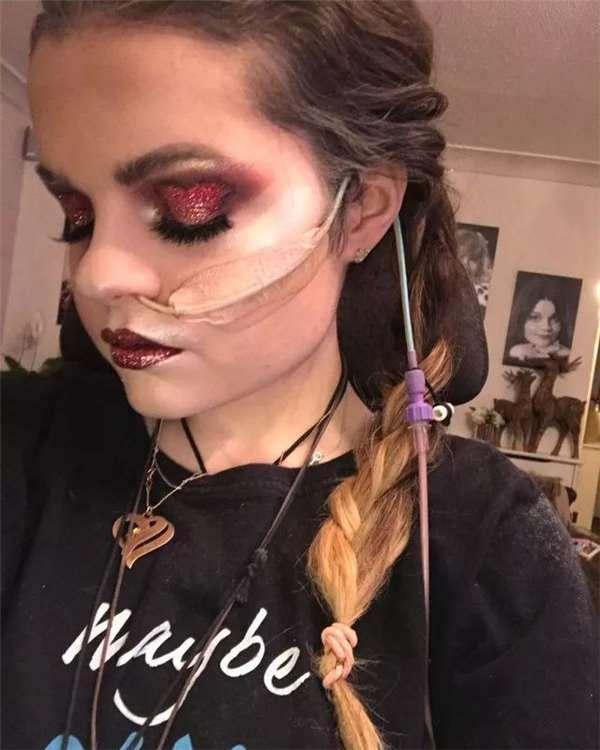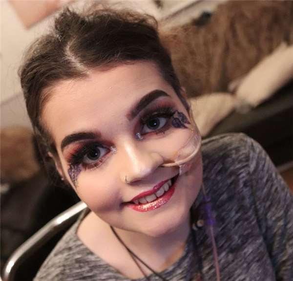 「我化妝不光是為了展示自己,更希望那些和我一樣安了這種管子的人能意識到,生病又怎麼樣?一根管子而已,你依然可以保持每天很美麗,喏,瞧我就做到啦!」