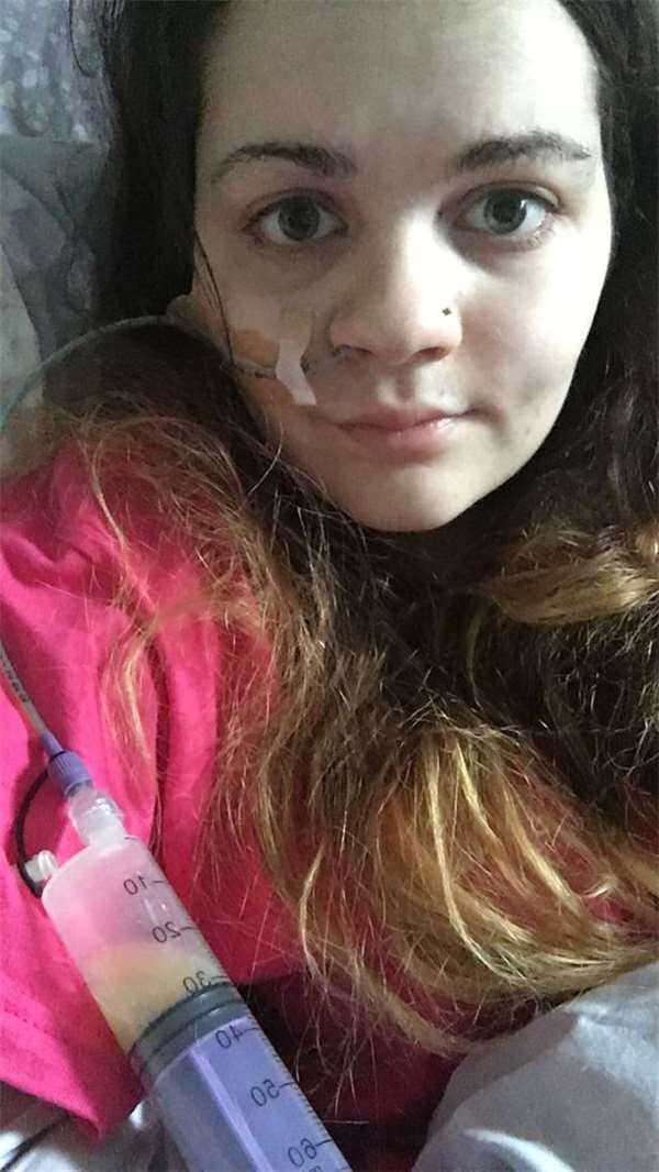 這還不是最糟糕的,後來病情不但沒有好轉,反倒變得更嚴重,Emily甚至沒有辦法吸收日常的食物,醫生不得不給她插上了一根進食管,以供Emily吸收生存必須的養分。