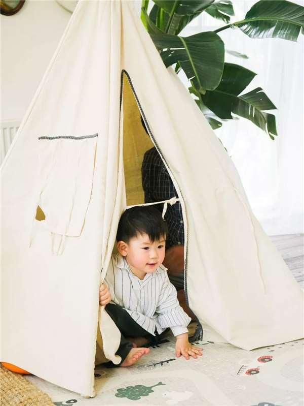 筐筐是在這個房子裡長大的,我們在客廳為他搭了一個小帳篷,他很喜歡鑽進帳篷,跟我們玩捉迷藏。