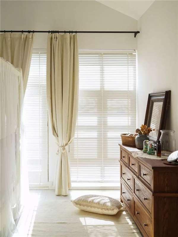 現在筐筐和我們一起睡,所以我們把二樓的主臥做成了米白色,希望在睡眠時,能有一個非常放鬆的狀態,我放了一個大斗櫃,它有很多抽屜,足夠收納筐筐的各種衣物。