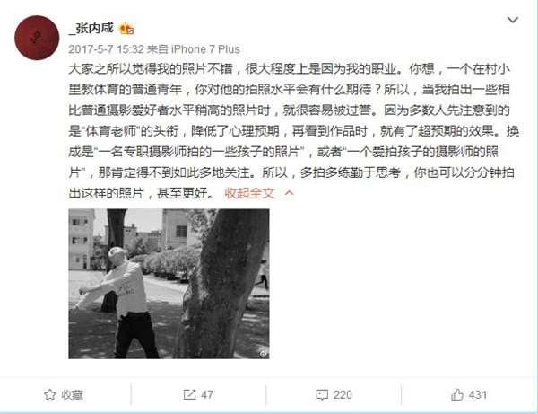 後來他以「張內咸」為名,將這些照片分享到了網上,沒想到就火遍朋友圈。