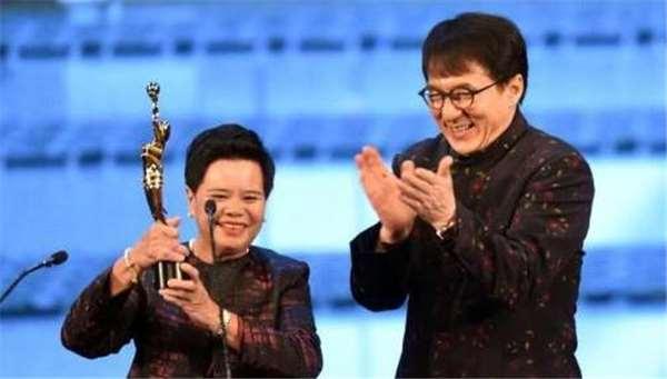 為了給她頒獎,成龍義不容辭連夜坐飛機趕回,親自為其調整麥克風。