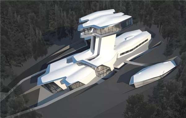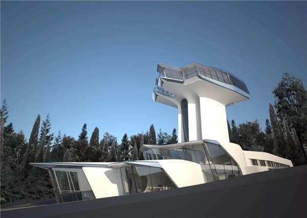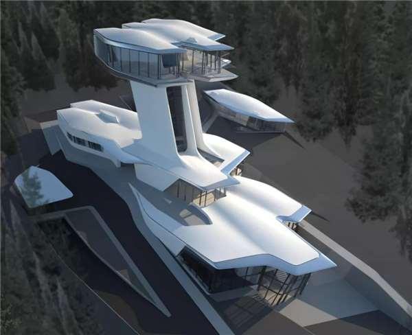 整個建築新潮,前衛,見所未見,透出濃濃的科幻感,與其說是房子,的確更像一艘星際戰艦。