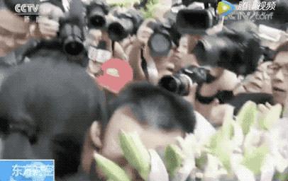 而父親王明清拿著鮮花,穿越人潮,奔向女兒:「請讓一下,請讓一下…… 」