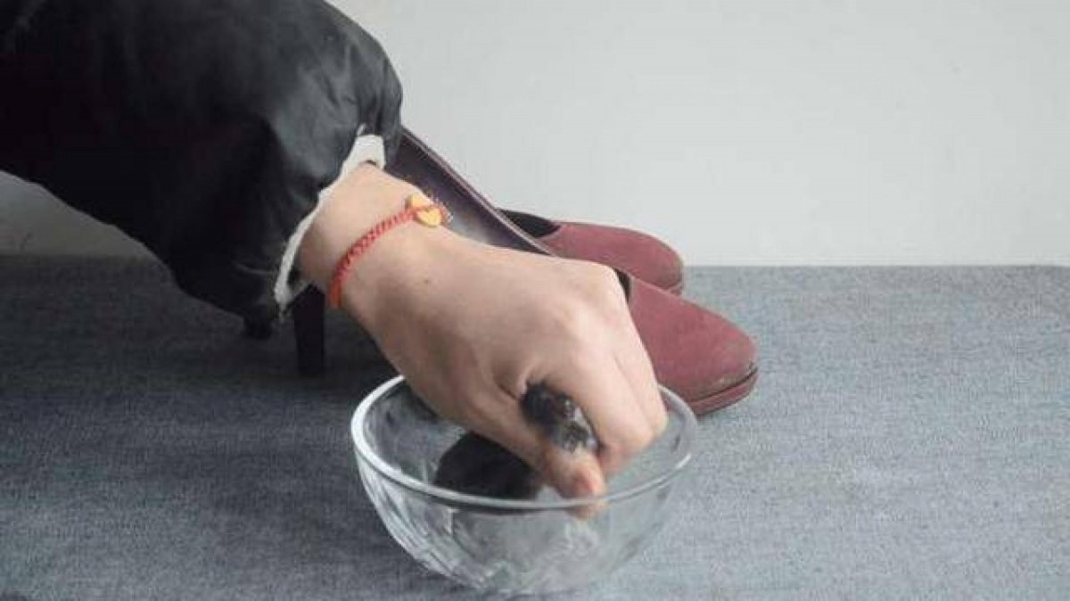然後將手上的護手霜塗抹在鞋子擠腳的地方,比如腳後跟或者鞋子前麵擠腳的地方。