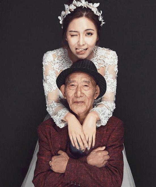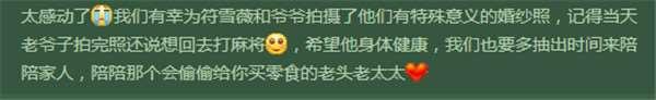 原來,這是符雪薇與87歲的爺爺符其全一起拍攝的婚紗照。