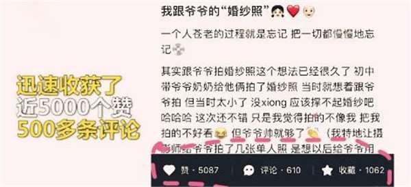 「其實初中的時候,我就帶爺爺奶奶去拍過婚紗照。」當時她用零用錢,為爺爺奶奶拍了一套婚紗照。