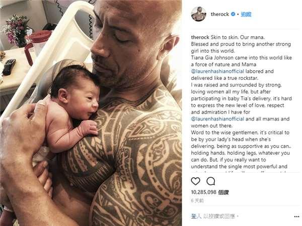 好萊塢硬漢巨石強森迎來了自己的第三個千金Tiana,他在IG宣布了這條喜訊,並曬出一張懷抱小女兒的照片,畫面十分溫馨!