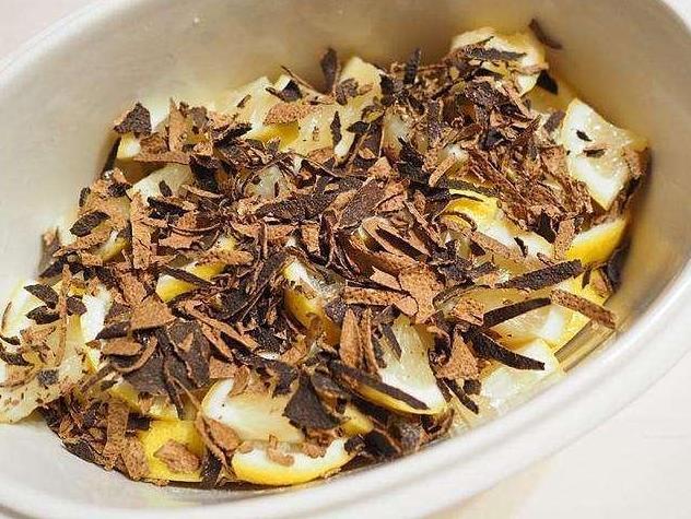 1、檸檬用鹽洗凈,去核切成片, 陳皮切成條, 川貝磨粉
