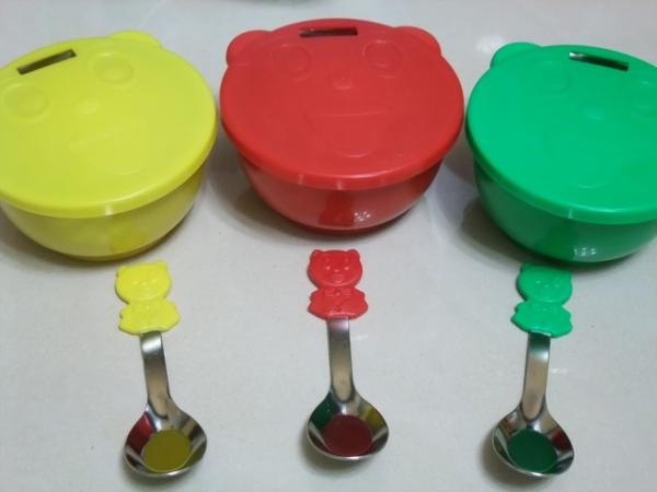 記得嗎?小時候上幼稚園,幼稚園都會發這種三色碗,其中還附配成對的蓋子和湯匙!許多網友一看到立刻興奮地附和:「幼稚園都是用這個!」「這是童年啊!」「有欸