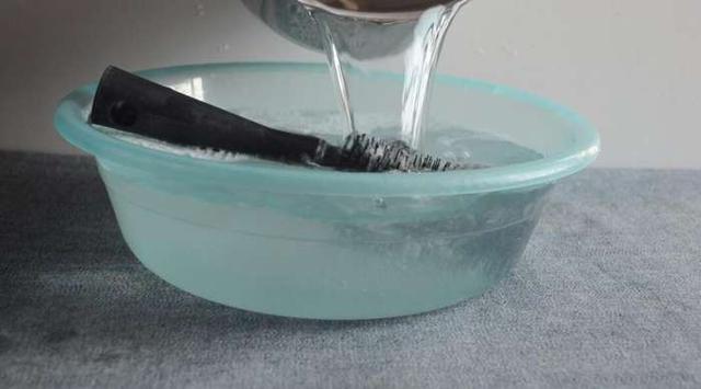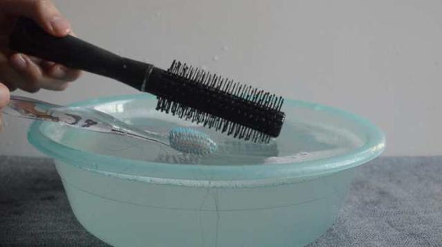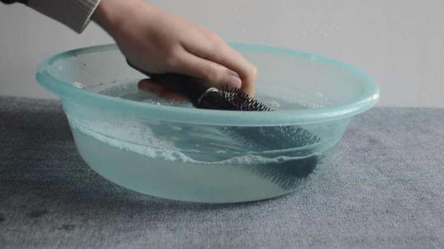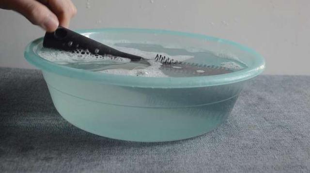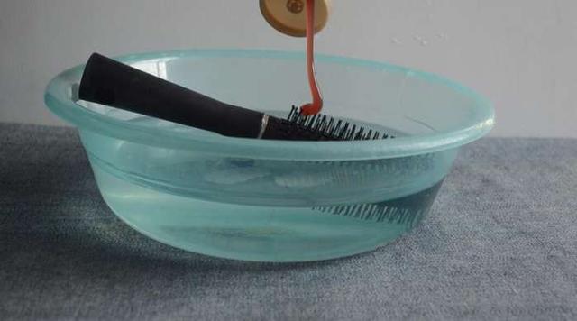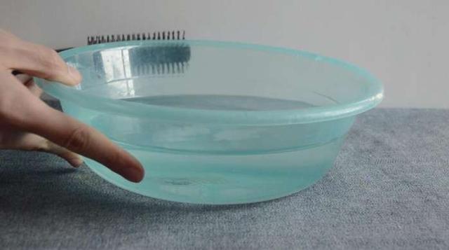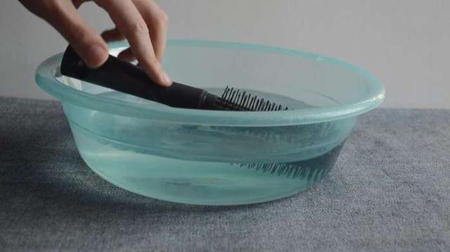 然後準備一盆水,將髒兮兮的梳子放進去浸泡一下。