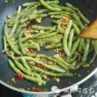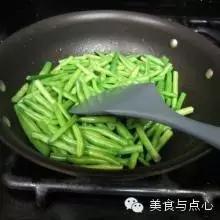 1、炒四季豆是關鍵,四季豆不像青菜容易炒綠,要邊放水邊慢慢炒知道四季豆轉綠色了才能放水煮