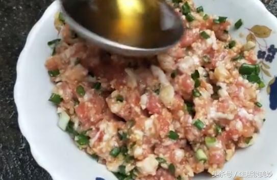 接著我們將剁好的肉末和馬蹄還有蔥花放入碗中,加入適量的耗油,雞精,鹽,醬油,食用油,並且將它們攪拌均勻