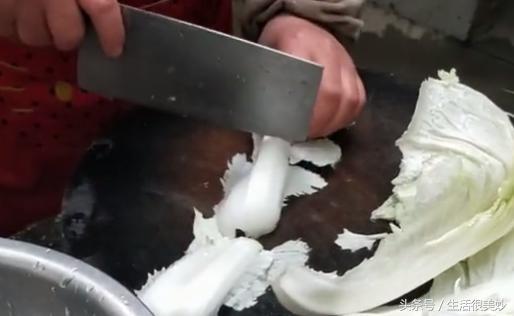 首先我們將白菜桿切掉,只需要用到葉子部分