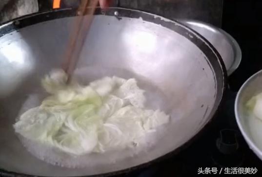 我們在鍋中放入水燒開,把白菜過下水,過水的時候在水中加點鹽和油,這樣白菜就不會變色(註:過水時不要燙太久)