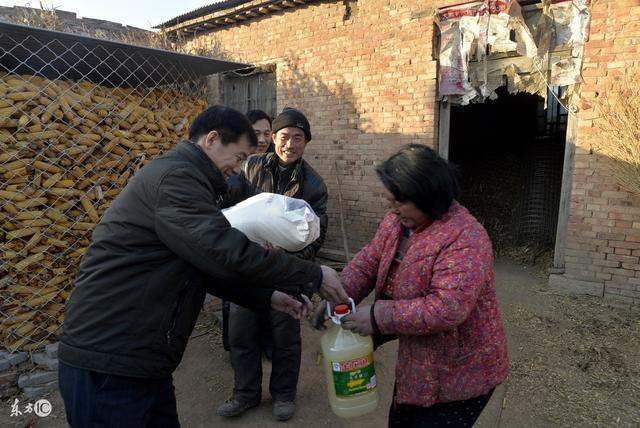小李村窮,有21戶貧困戶,80口人,眼見就要過年了,劉桐為每個貧困人,發了1000元現金,又送去了米麵油等生活物資。