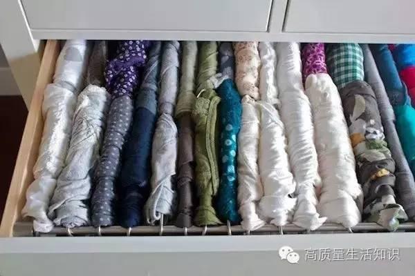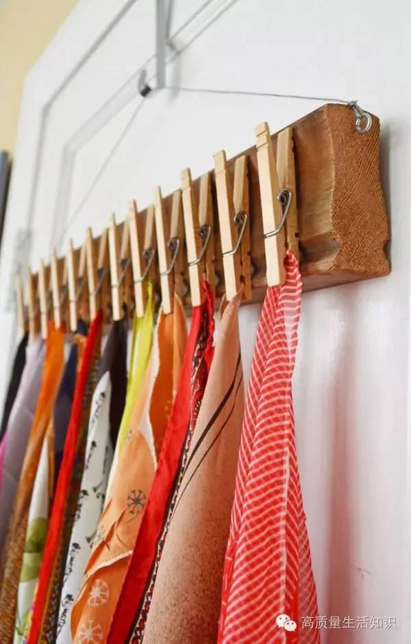 還有另外一個辦法,就是用小夾子固定,一個夾子夾一條絲巾,掛起來還特別好看哦!