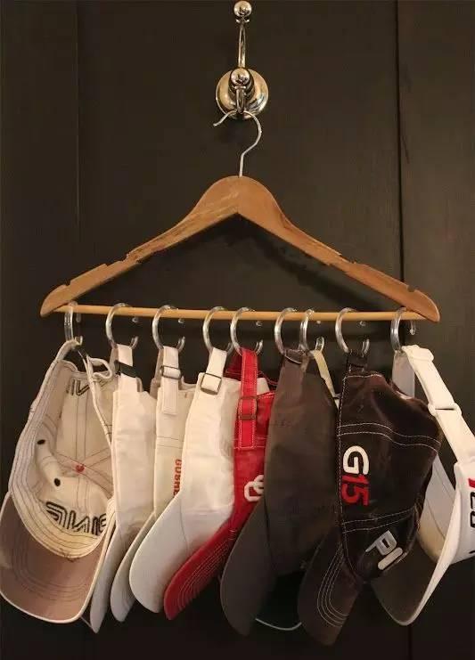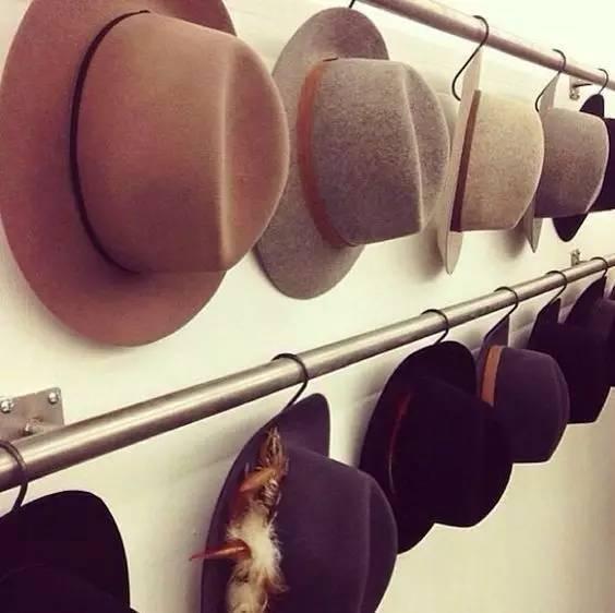 圓頂帽都用S形掛鉤勾在橫桿上,隨用隨取,而且不損帽子的形狀,特別適合帽子愛好者。