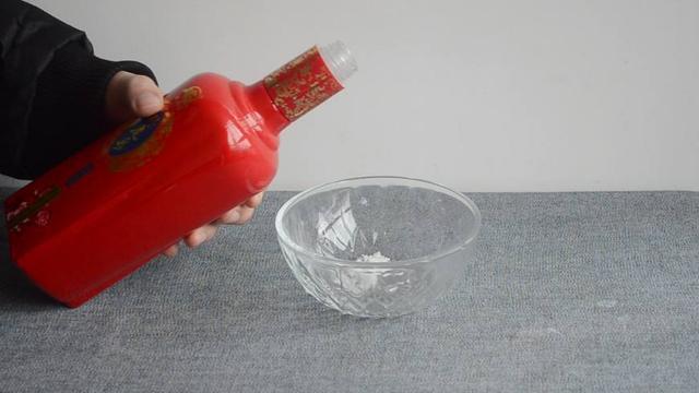 然後再往容器內倒入一點白酒。