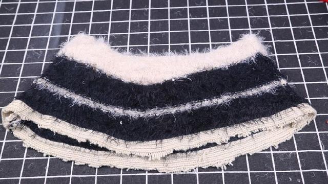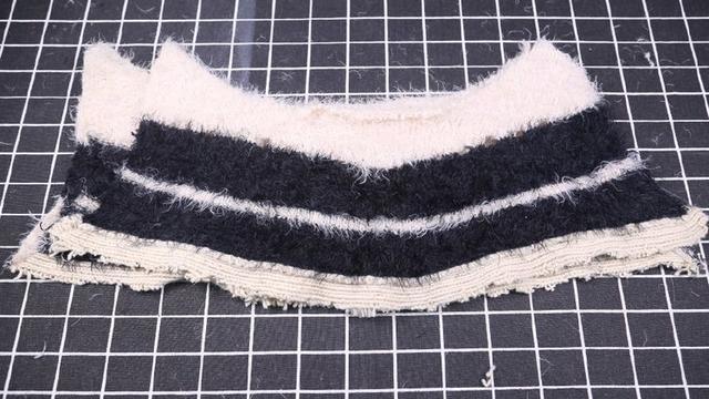 1、把舊毛衣最寬最長的地方用剪刀剪下來。