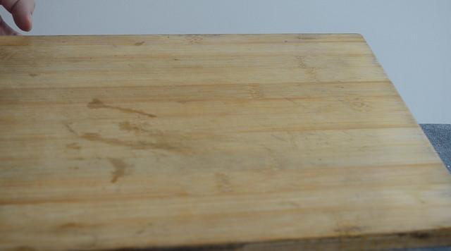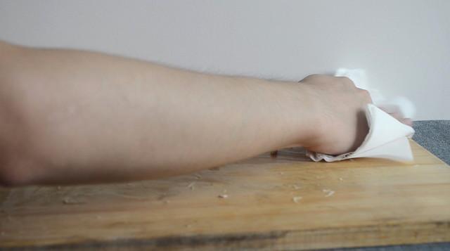 接著用紙巾或者抹布擦掉菜板上的汙漬。