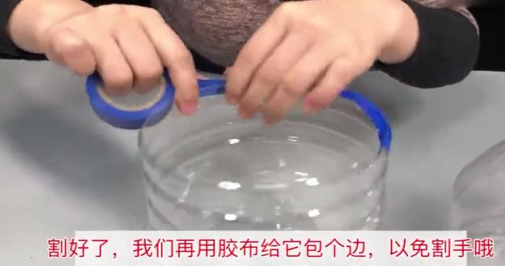 4.為了預防割手,用膠布在瓶子的邊緣包邊!