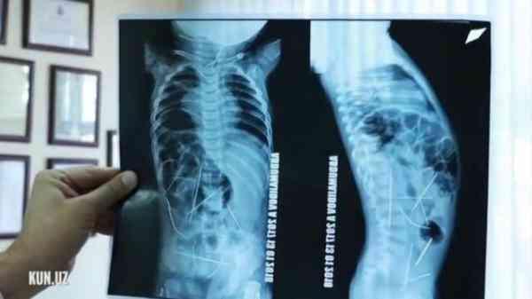 長針散布在男嬰的體內各處,包括心臟、脖子、膀胱和脊椎等部位,都能看到長針的蹤影。