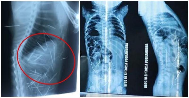 一位11個月大的男嬰因為高燒不退,加上排尿不順,母親便急忙帶著他到醫院求診,醫生原以為是是感染肺炎,但在經過X光檢查後,卻意外發現男嬰體內有16根金屬製長針,畫麵讓人看了頭皮發麻。