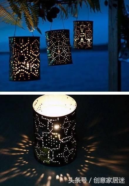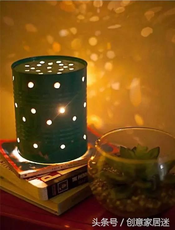 第三步:等油漆幹透後,將準備好的小彩燈放進罐內點亮就好了。