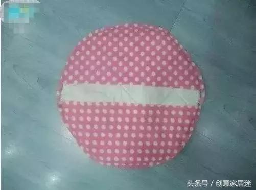 第五步:將裁剪好的裝飾布的整片和兩個半片如圖背麵向對縫合,兩個半片中間要留5厘米的寬度,這樣方便把凳墊和紙盒板放進去。