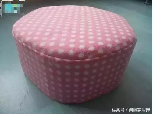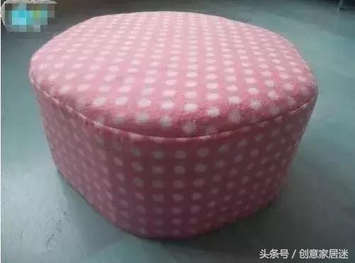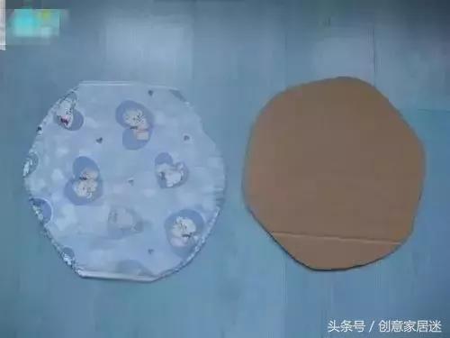 第六步:將凳蓋頂部和凳圍縫合,底部只要塞進奶粉罐和紙盒板中間就可以夾住。