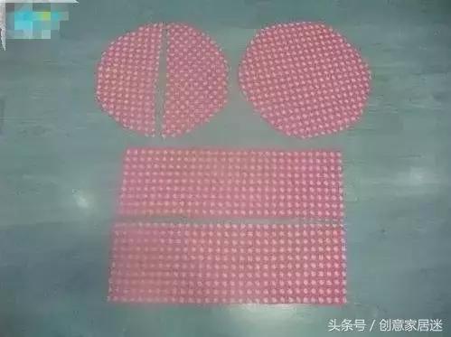 第四步:將準備好的碎花布裁剪出一個整片,兩個半片,還有凳身圍片。注意要留1厘米縫份,底邊留3厘米。兩個半片最好使用彈性麵料。