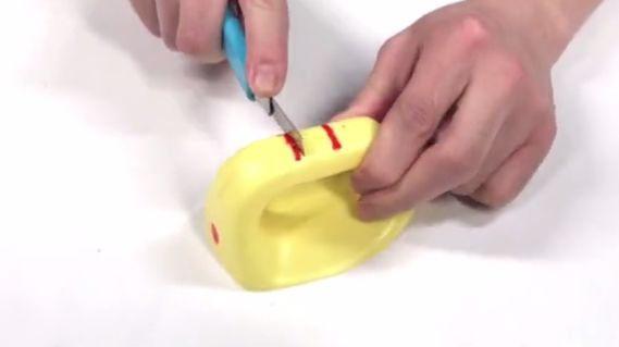 接著繼續標註(上麵按照塑料盆邊沿厚度標註)並且將它切開,頂部戳孔