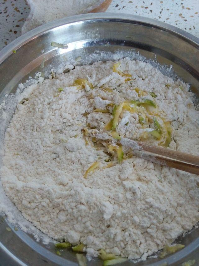 倒入適量的麵粉,撒上鹽,也可以放點兒蔥花!