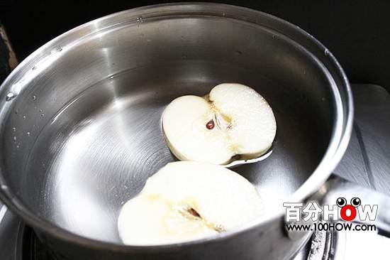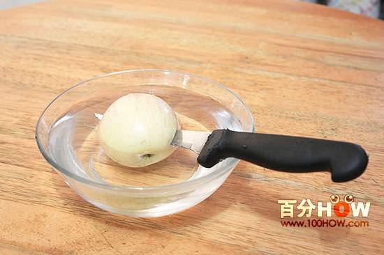 2,在水裡切蘋果,隔斷酶和氧氣的接觸,也是防止變黑的方法。將切好的蘋果放在水裡,要吃的時候才取出。