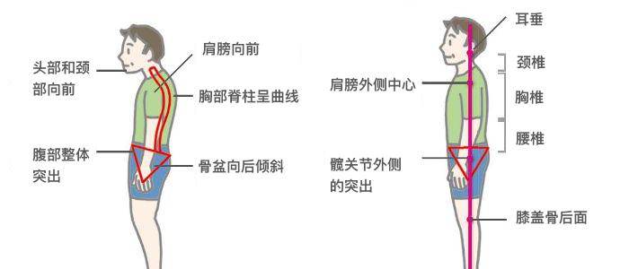 駝背姿勢與理想姿勢