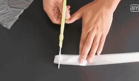 把保鮮袋對摺成條狀,再剪開密封口的那一端,留出洞口方便水流流出。