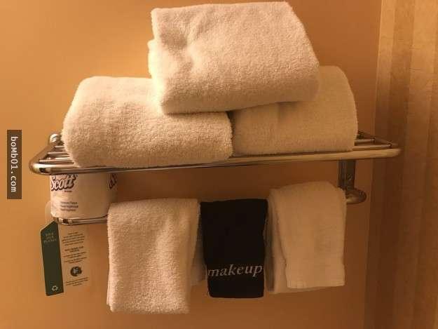 ▼這間酒店專門準備了卸妝用毛巾。
