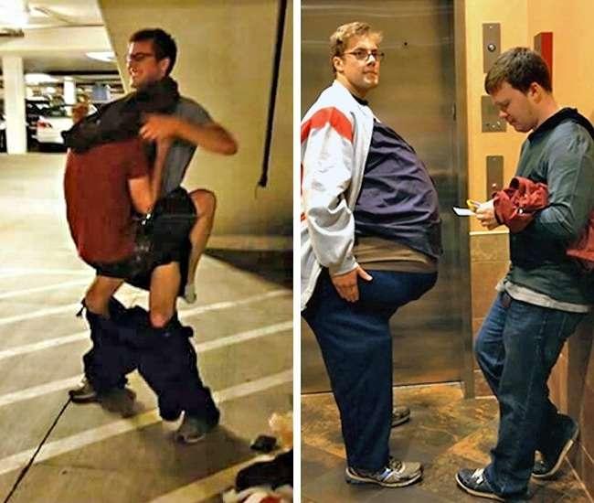 ▼「我們買了一張電影票,想兩個人一起進去,所以我們決定偽裝成大胖子。」