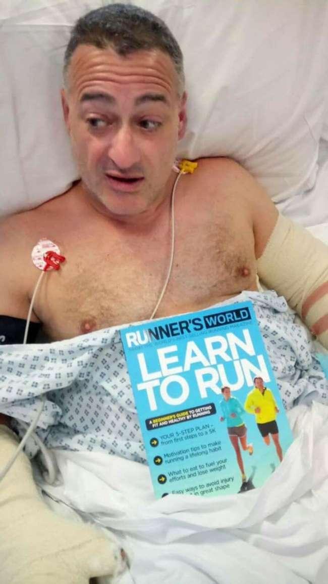 ▼他捨己為人阻止恐怖襲擊,結果自己受傷了。朋友們給他帶了這本雜誌:《學會跑》。