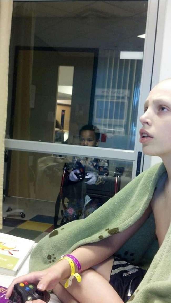 ▼兩位病童一起打電動,雖然其中一個必須待在無菌室,不能出去。