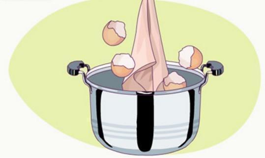 我們可以將抹布放在盛有清水的鍋中,然後呢接著就將雞蛋殼放入,大火煮開,開煮持續6分鐘,然後取出來用涼水洗乾凈在曬乾就可以了。