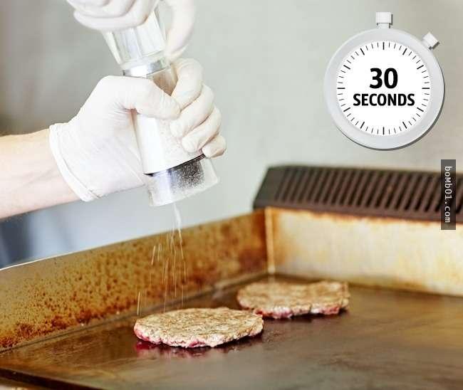 ▼2.漢堡30秒就能做熟:在大型快餐連鎖店中,簡單的漢堡30秒就能準備好。在被送到廚房之前,它們早就做好了,只是簡單冷凍罷了。