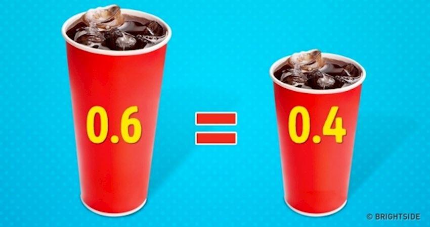 ▼6.標準杯的飲料其實是大杯的:在大杯、中杯、小杯飲料中,人們會本能選擇中杯,所以很多快餐店的標準杯其實是大杯。如果你不選擇,由店員指定的話,他們會給你大杯的。