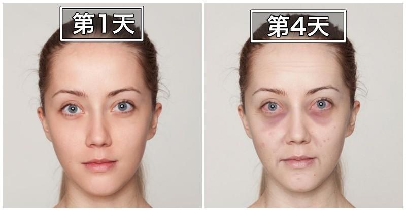 看看第一天和第七天的對比,是不是真的超級誇張,從原本的正妹瞬間變成老太婆,證明了睡覺對我們來說,真的是一件非常重要的事情,所以大家千萬不要再熬夜了。